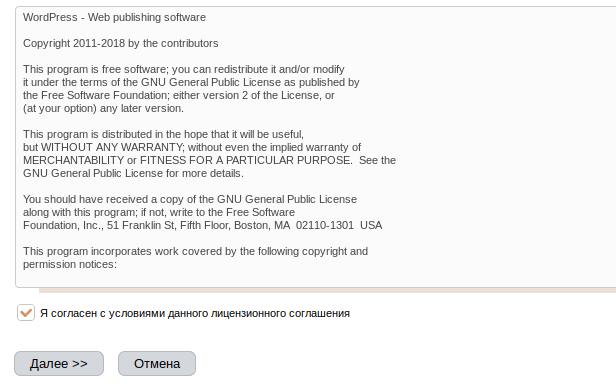 Далее необходимо ознакомится с условиями лицензионного соглашения, установив галочку в поле "Я согласен с условиями данного лицензионного соглашения", после чего нажать на кнопку "Далее":